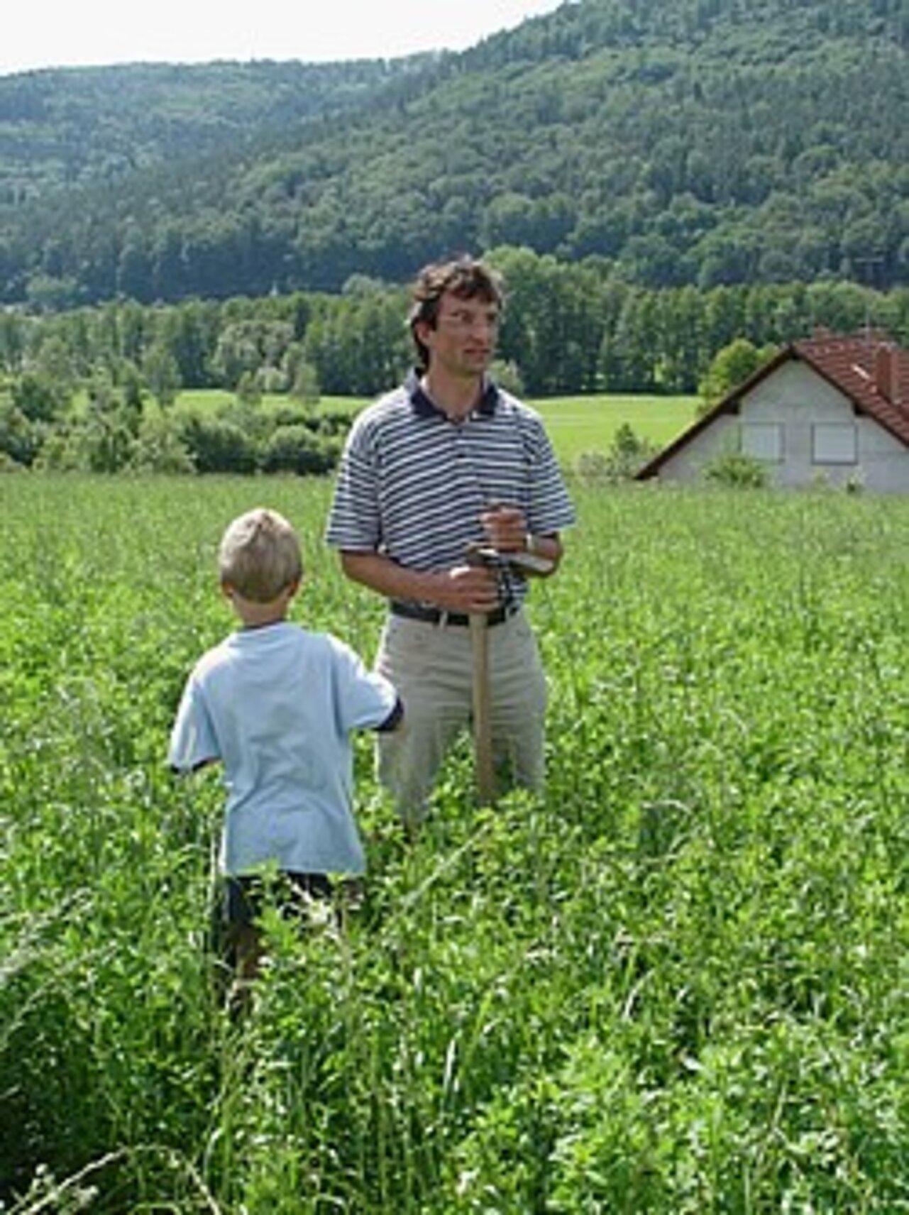 Bernhard Deuchert bewirtschaftet seit 1996 mit seiner Frau und den vier Kindern in Weilbach seinen Betrieb nach Bioland-Richtlinien.