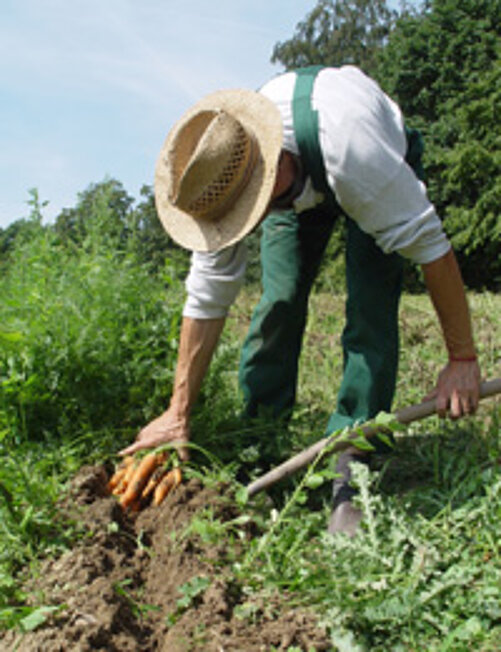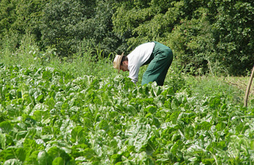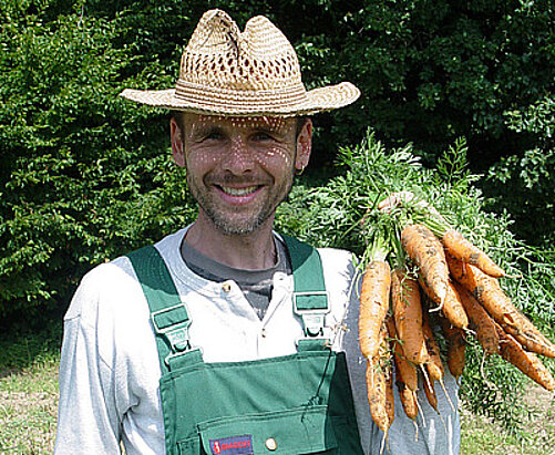 In der sanft, hügeligen Landschaft des Vorspessarts ist Bringmirbio zuhause. Zwischen Wäldern, Weiden und kleinen Ortschaften liegt Geiselbach. Hier baut Kurt Lorenz, einer der beiden Geschäftsführer, auf ca. 2,5 ha Fläche Gemüse, Beerenobst und einige Kräuter nach Bioland-Richtlinien an. Die Haupterntezeit dauert von Mai bis September, aber auch schon im zeitigen Frühjahr werden Rhabarber, Radieschen und Spinat geerntet.