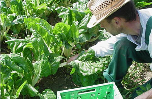 Sorgfältig werden die Mangoldblätter geerntet. Die ganze Staude wird erst später geschnitten