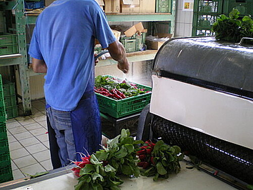 Zurück auf dem Hof dürfen wir noch beim Waschen der Radieschen zuschauen – gerne würden wir uns jetzt selbst unter den Schlauch stellen – und bekommen das Filtersystem der Wasserrückgewinnung erklärt. Die Wasserqualität der Brunnen wird übrigens regelmäßig geprüft – bisher gab es keine Beanstandungen. Dann ist es Zeit für uns weiterzufahren wir wollen noch zu Rudi und Monika Waas, die hier ganz in der Nähe ihren Biohof haben. Wir verabschieden uns und sagen Servus bis zum nächsten Mal.
