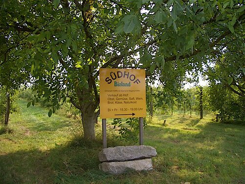 Er hat ihn von seinen Eltern geerbt und sie hat ihn, den Christoph, in Weinsberg kennen gelernt. Sie war bei der Obstbauberatung – Fachfrau. Jetzt hat der Südhof Mann, Frau, 4 Kinder, Hund, Katze, Maus... leckere Zwetschen, Kirschen, Beeren, viele alte und neue Apfelsorten, verschiedene Birnen und die Harrow Sweet.