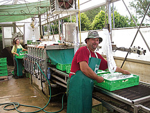 Das Gemüse wird gewaschen und verpackt